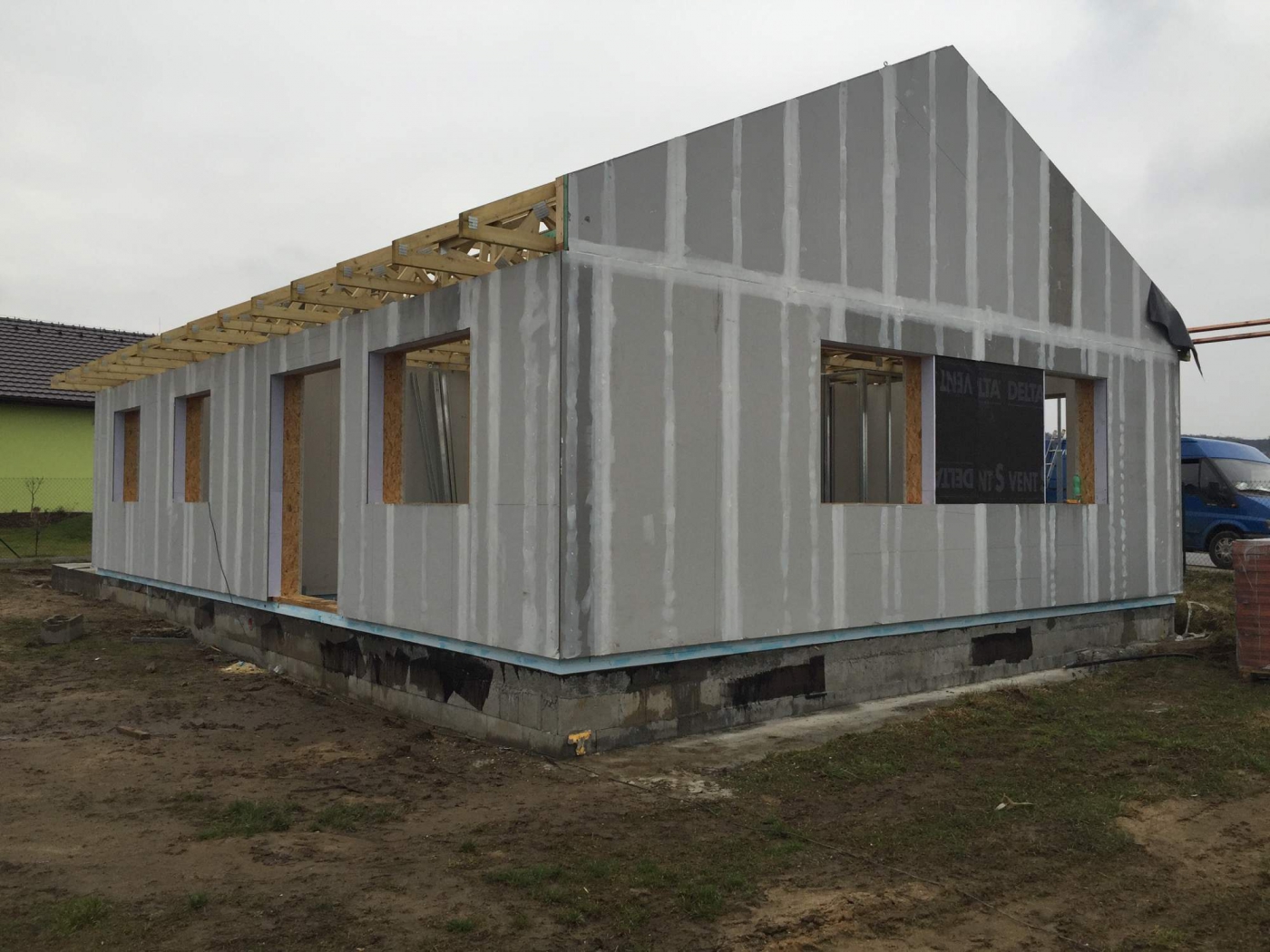 Menší dřevostavba pro rodinu s malými dětmi a pejskem. Stavěli jsme v klidné části Štětí obklopené přírodou a lesy. Dřevostavba byla původně navržena a vyprojektována i s garáží. Tu jsme nakonec, ale po dohodě s majiteli v první fázi nerealizovali s tím, že majitelé spíše vybudují otevřený přístřešek na auto.
