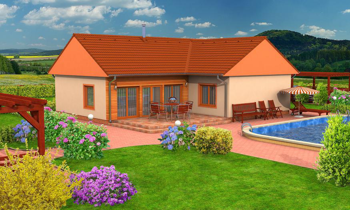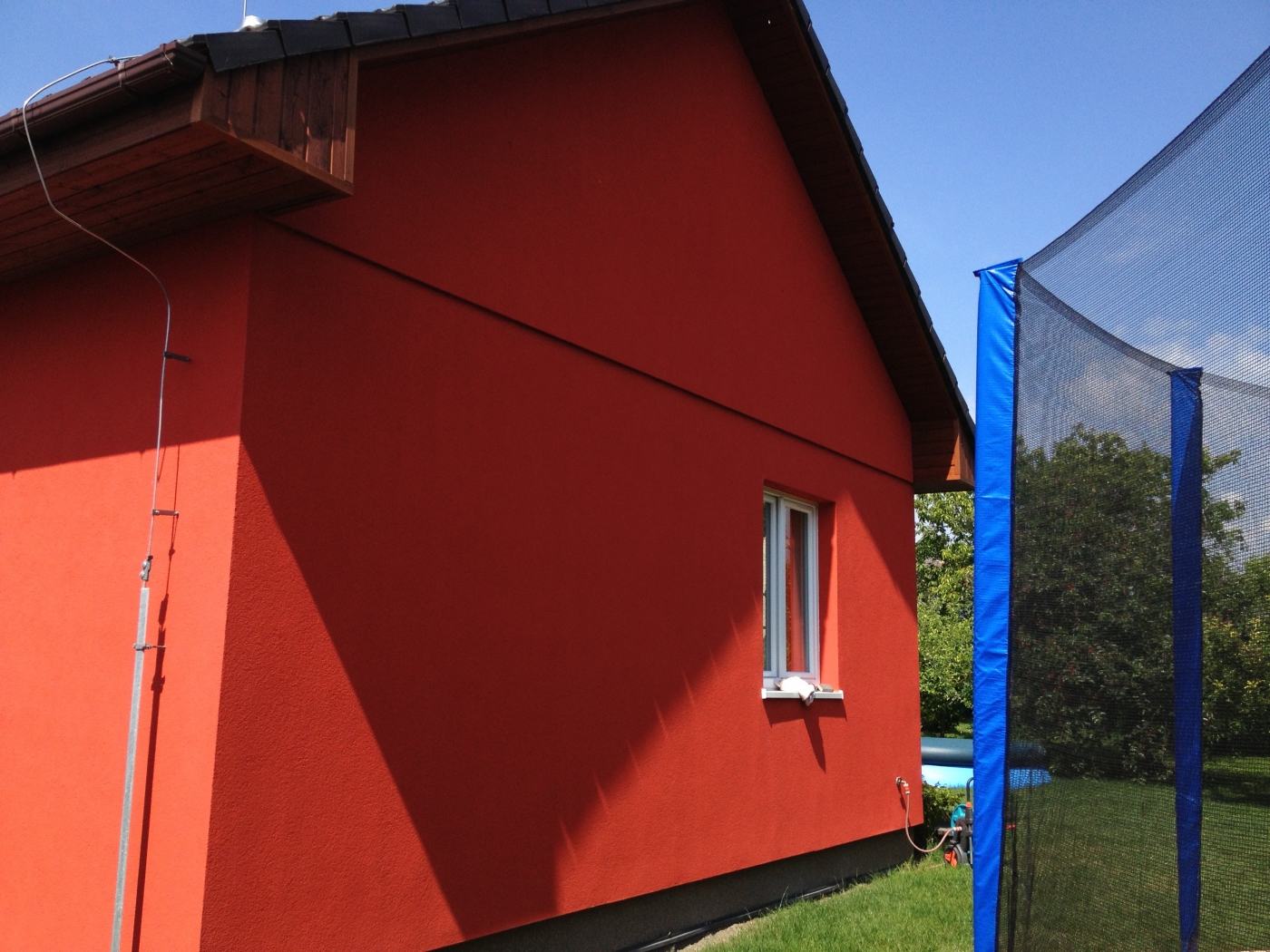 Dvoupatrový dům v moderním stylu má atypický a na konstrukční řešení náročný prosklený roh do hlavní obývací části. Zákazníci si potrpí na čistý a jednoduchý design. Objednávalo se např. kovové schodiště na míru, které tvoří jeden z výrazných prvků prvního podlaží. Moderní vzhled domu zvenku určuje pultová střecha. Dům má fasádu v kombinaci s dřevoobkladem. Na dům pak navazuje prostorná garáž, kterou si zákazníci přáli zároveň používat jako malou dílnu, část garáže je tedy oddělená zateplená a je do ní přivedena voda.