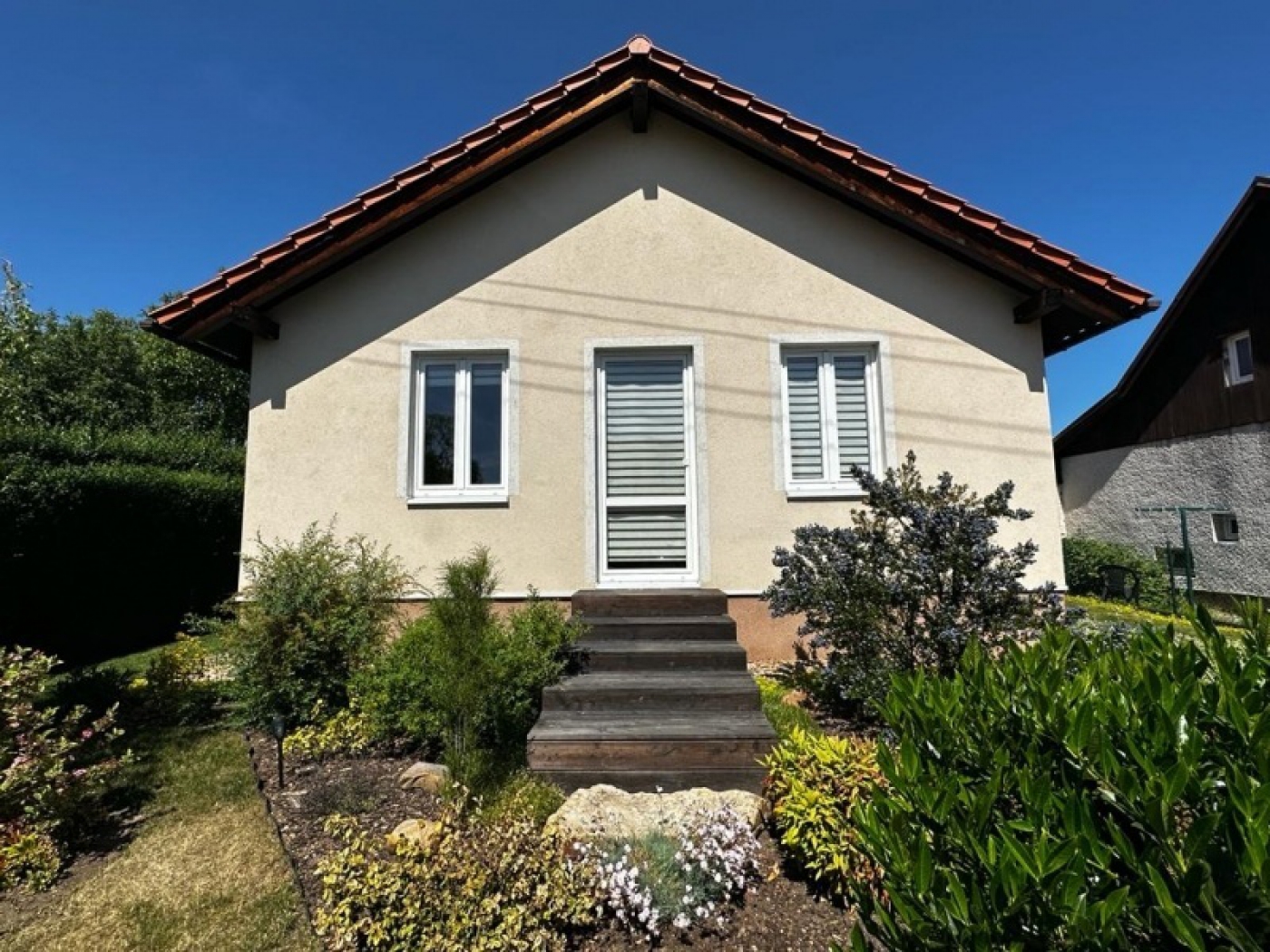 Malá dřevostavba, která vyrostla na zahradě rodného domu majitelky. Zákaznice zdědila po svých rodičích velký zděný dům s velikou zahradou. Zákaznice je v důchodovém věku, bylo by pro ni náročné se o tak finančně i technicky náročný dům sama starat, rozhodla se tedy rodný dům prodat a část pozemku si oddělit a ponechat pro výstavbu malého, energeticky nenáročného bungalovu, kdy péči o něj zvládá bez starostí a sama. Radost jí pak dělá malá okrasná zahrada o velikosti 400 m2.