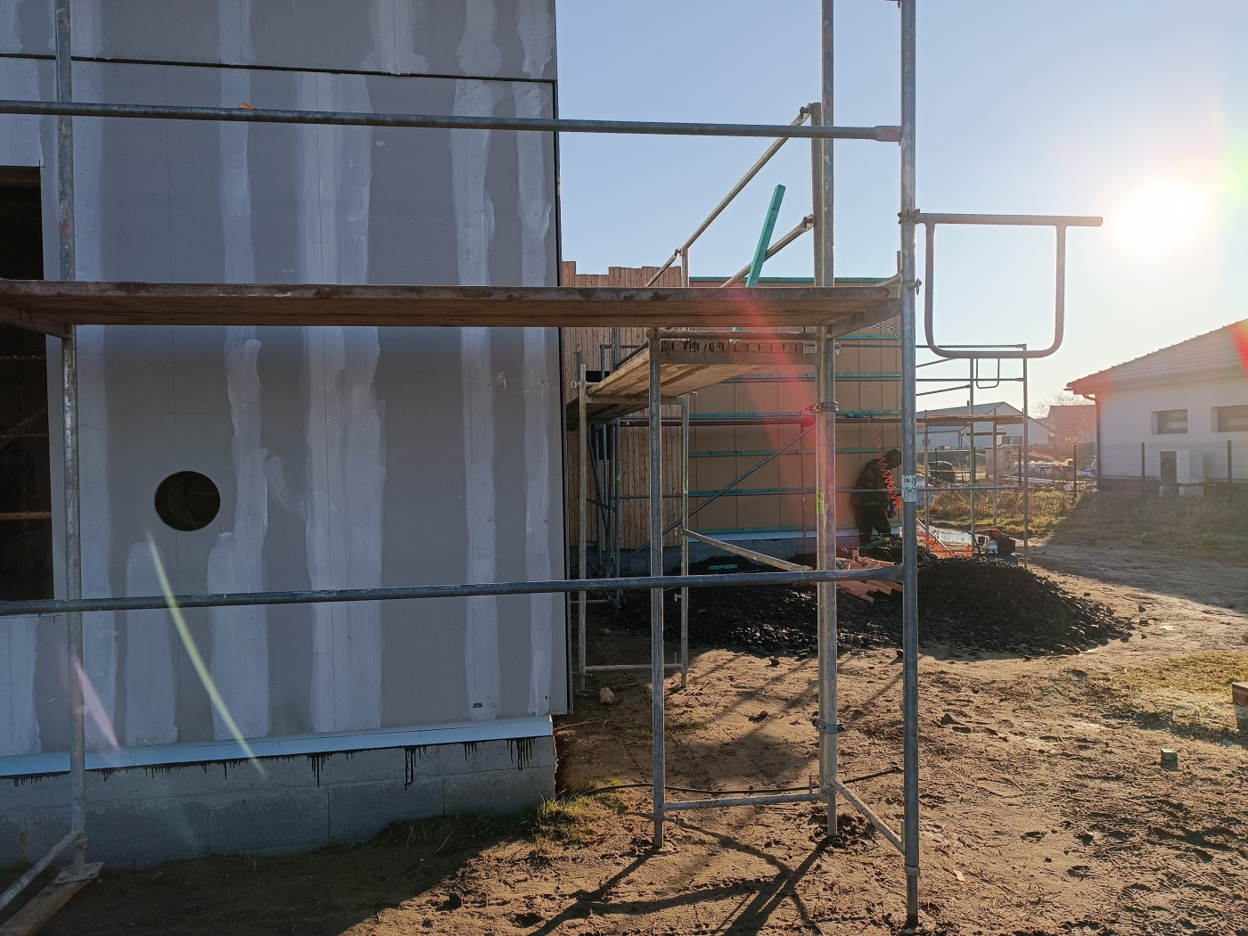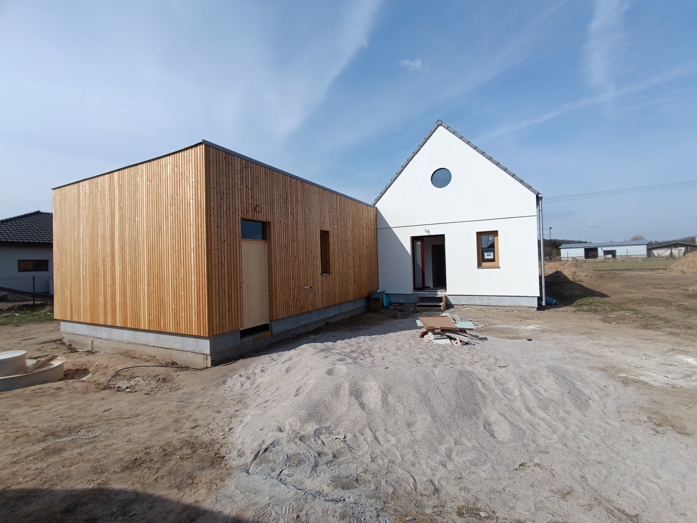 Bylo nám ctí podílet se na realizaci dřevostavby v klidné obci Kyškovice pro mladou rodinu s malými dětmi. Jednalo se o dům navržený architektem, takže nás čekala spousta výzev v podobě atypických prvků a jejich technického řešení, ať už mluvíme o kulatých oknech ve štítu, přes netypické schody, které zároveň tvoří knihovnu, až po mezonetovou pracovnu. Vzhled domu, ačkoli je v moderním stylu, přesto nijak neruší okolní vesnickou starou zástavbu. Věříme, že zákazníci zde prožijí mnoho spokojených let v blízkosti lesa a přírody přesto s ideální dostupnosti do blízkého města.