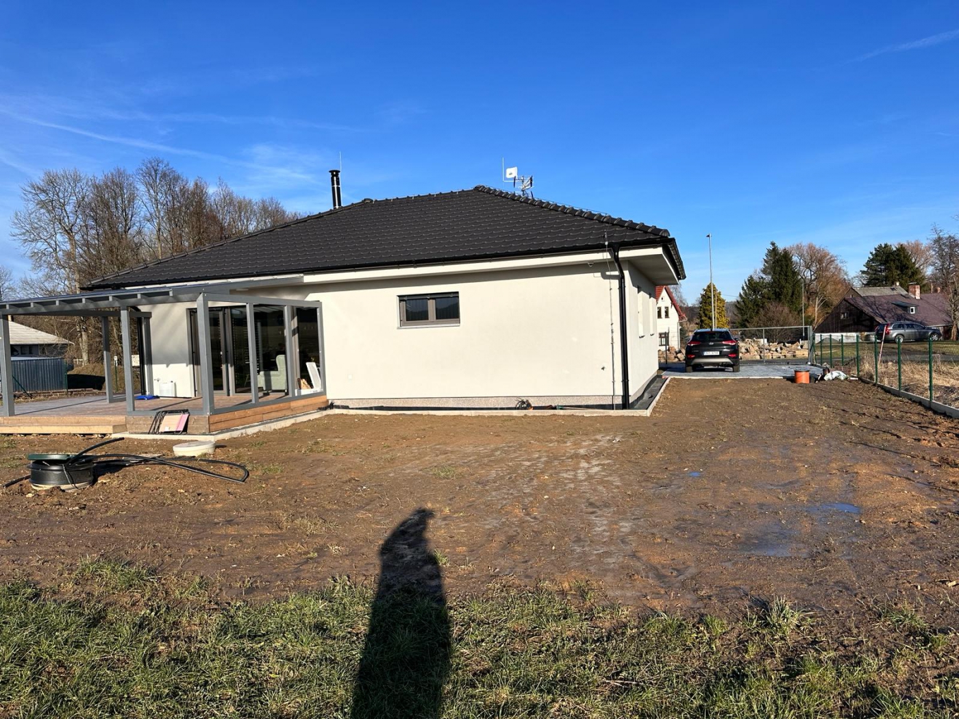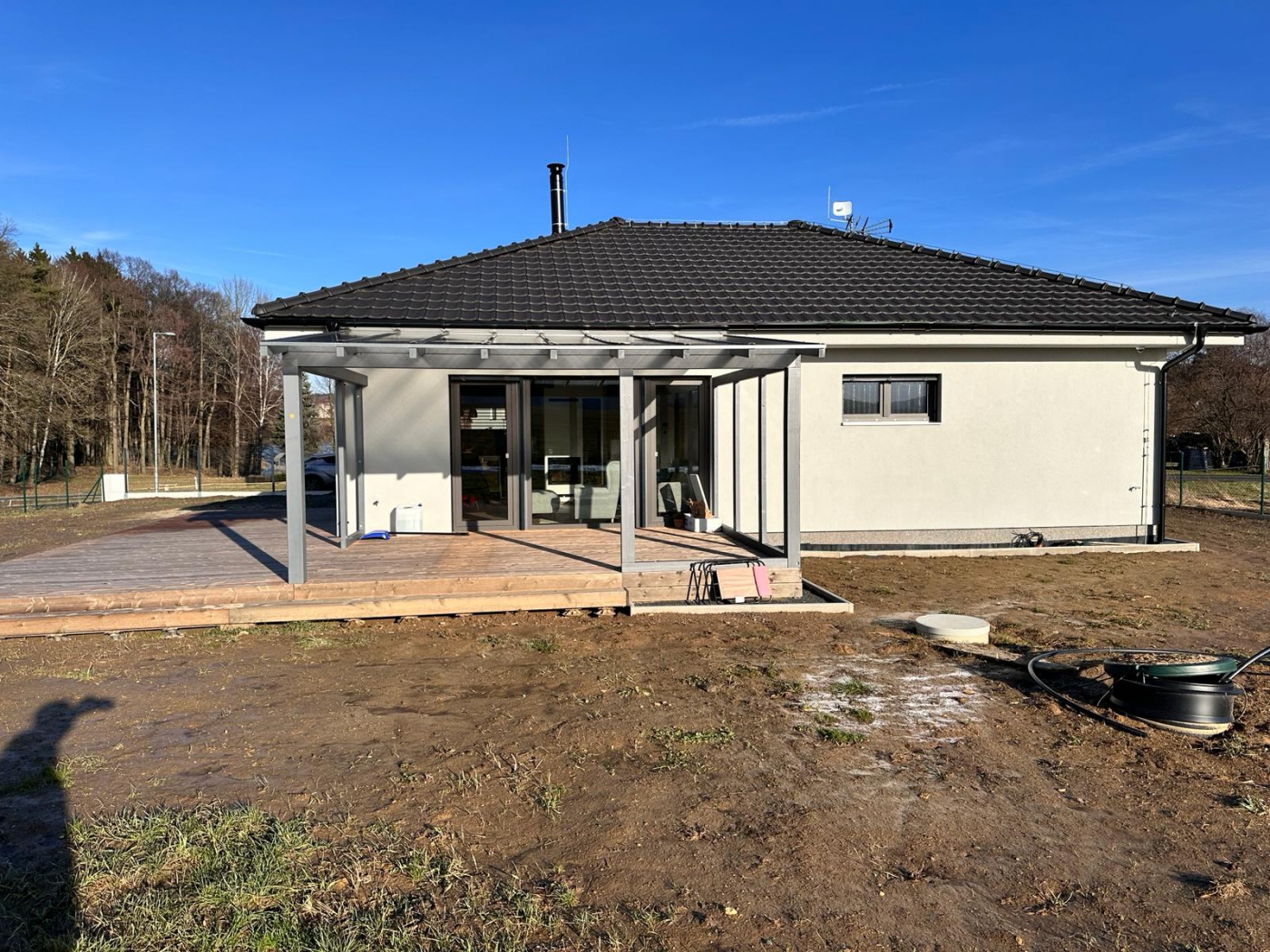 Po dlouhé době jsme realizovali dřevostavbu na pro vás vzdálenějším místě. Byl to faktor, který jsme na počátku velmi zvažovali. Zákazníci byli ale natolik milí, vstřícní a pro nás rozhodnutí, že jsme do toho šli. Díky tomu jsme prožili čásr roku v úžasném prostředí šluknovském výběžku a zrealizovali příjemný bungalov, který obklopují pastviny a hluboké lesy. V průběhu stavby jsme se se zákazníky domluvili ještě na realizaci zimní zahrady, o kterou si zvětšili obytnou část a komfort při výhledech do přírody.
