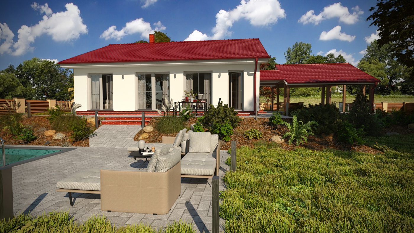 Tatol dřevostavba se nachází v povodňovém pásmu v navíc CHKO, bylo tedy třeba splnit několik podmínek tžzv. vyšší skoln střechy a základovou desku ve výšce 1,5m nad rostlým terénem. Vysoká základová deska na druhou stranu dala po dohodě s majiteli vzniknout podsklepené části dřevostavby. Dřevostavba byla zákazníkem zažizována ve venkovském stylu a návozem terénu k obývací části, vznikla prostorná vyvýšená terasa, kde majitelé odpočívají a kochají se výhledem na Labe a zahradz, která je pod úrovní.