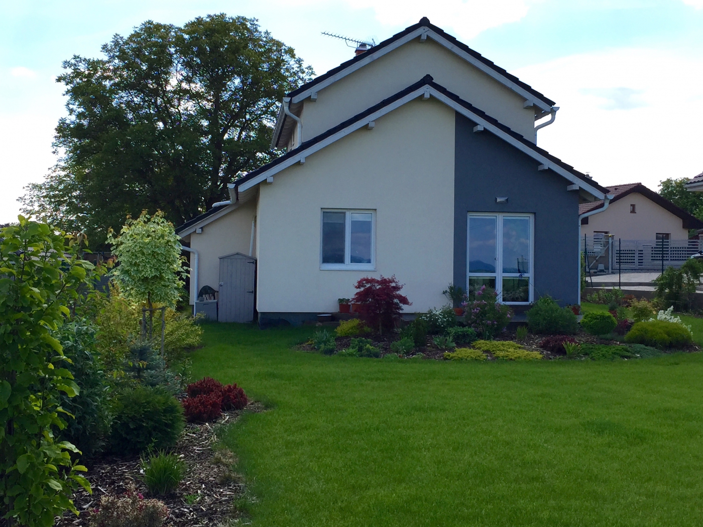 Zadání u tohoto vzhledově neotřelého domu bylo: přízemní byt pro majitelku a v druhém patře vybudovat 1+1 byt/zázemí pro dospívajícího syna. Tento dům nemá jediné okno situované na jih, v letních měsících dosahuje příjemného klima i bez klimatizační jednotky. Dům byl po deseti letech užívání osazen fotovoltaickými články na střeše.