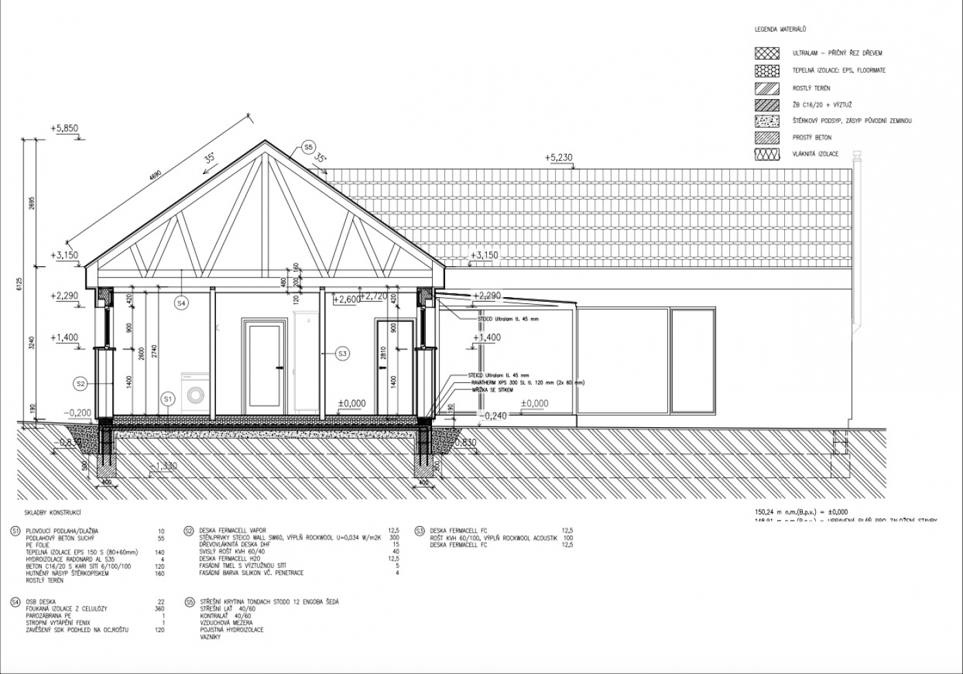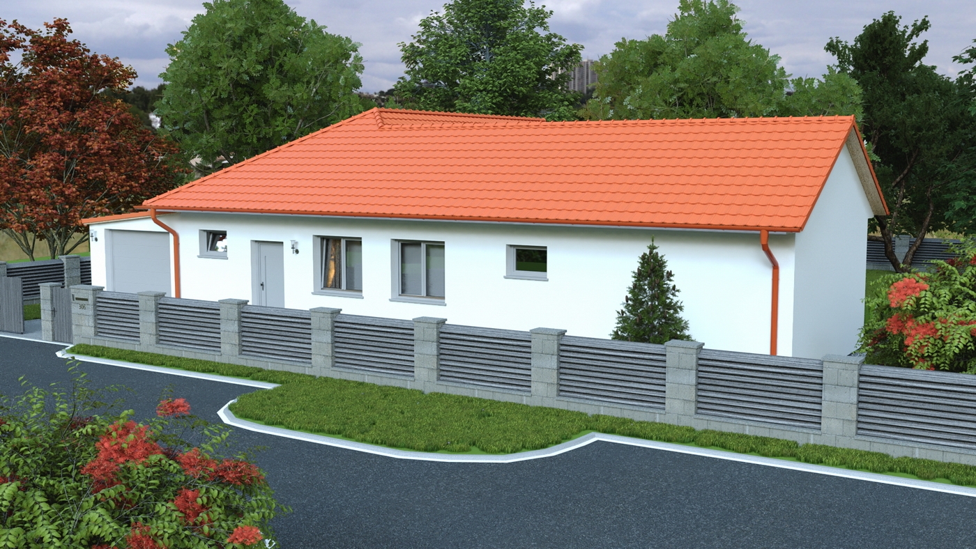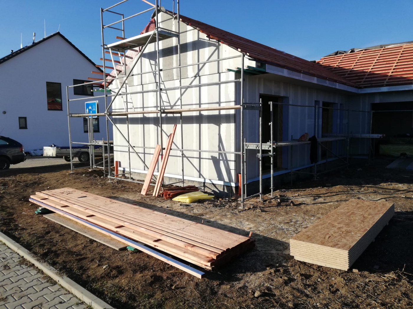 Tato dřevostavba se nachází v nové zástavbě rodinnými domy v Žalhosticích. Jedná se o komfortní a prostornou dřevostavbu bungalov s velkými prosklenými plochami, posuvné skleněné portály ústí na dřevěnou terasu se zimní zahradou, kterou jsme po dohodě s majiteli dřevostavby realizovali také my. Dále jsme se domluvili na realizaci venkovních zpevněných ploch v litém betonu v kombinaci s kamínky, provedli jsme terénní úpravy a oplocení pozemku plotem s prefabtrikovaných betonových dílů s plotovou výplní z modřínu.