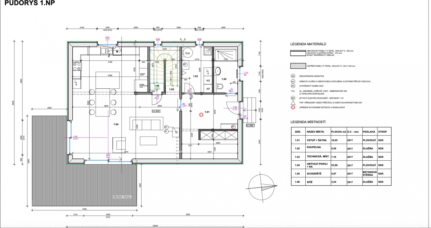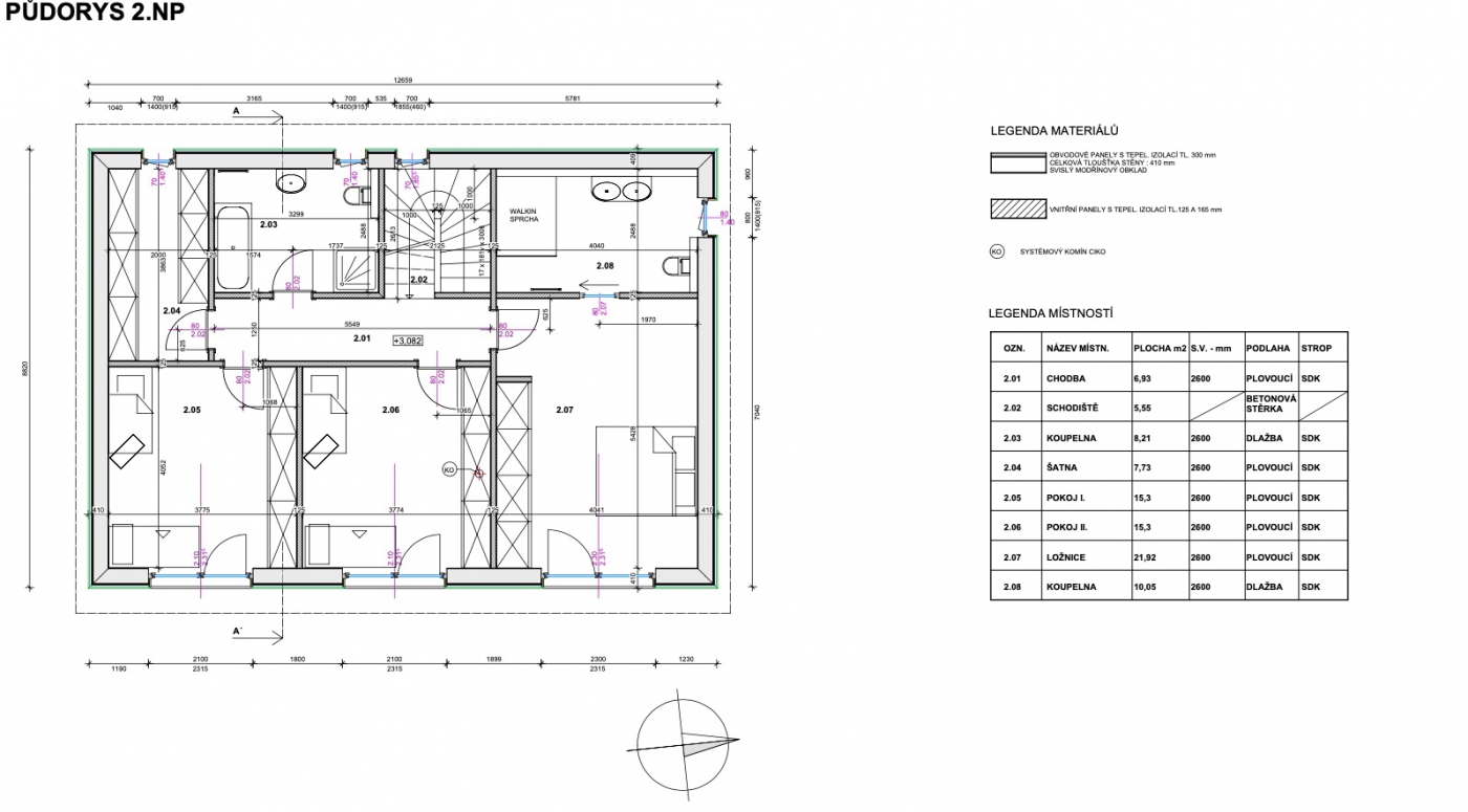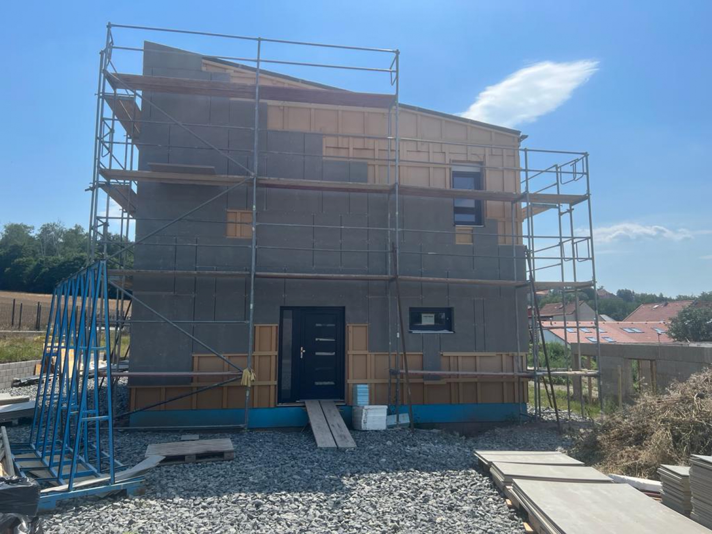 Rádi bychom představili realizaci dvoupodlažní dřevostavby v Pcherách. V této dřevostavbě jsme již po několikáté použili systém zasklení fixních výloh, který spočívá v předsazení izolačních trojskel před vlastní konstrukční plášť dřevostavby. Tím eliminujeme tepelné mosty, můžeme dosáhnout větších prosklených ploch, panoramatických výhledů a v neposlední řadě vzniká zajímavý designový prvek přiznané dřevěné konstrukce v interiéru. Dále jsme na této dřevostavbě realizovali odvětrávanou fasádu pomocí obkladu cementovláknitých desek, která má po dobarvení desek evokovat Mondrianyho obraz. Dřevostavba je realizována v pasivním standardu. Na přání zákazníka je ve východní části dřevostavby technicky počítáno s realizací budoucí lezecké stěny.