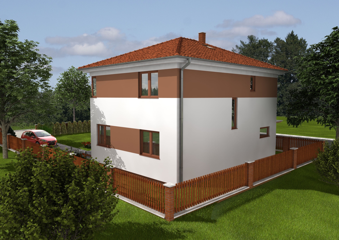 Velkou a prostornou dvoupatrovou dřevostavbu jsme postavili v Praze, v městské části Petrovice. Stavba tak velké dřevostavby v hustě obydlené zástavbě s nepřejícími sousedy byla trochu výzvou, ale naplnili jsme ji dle přání a očekávání zákazníka. Jedná se o moderní nízkoenergetickou dřevostavbu pro mladou čtyřčlenou rodinu.